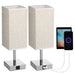 Bedside Table Lamp with Fabric Shade - Warm White LED Bulb, Touch Control, Desk Light, USB A and Type-C Charging Ports - Ideal for Nightstands, Work Desks and Study Areas